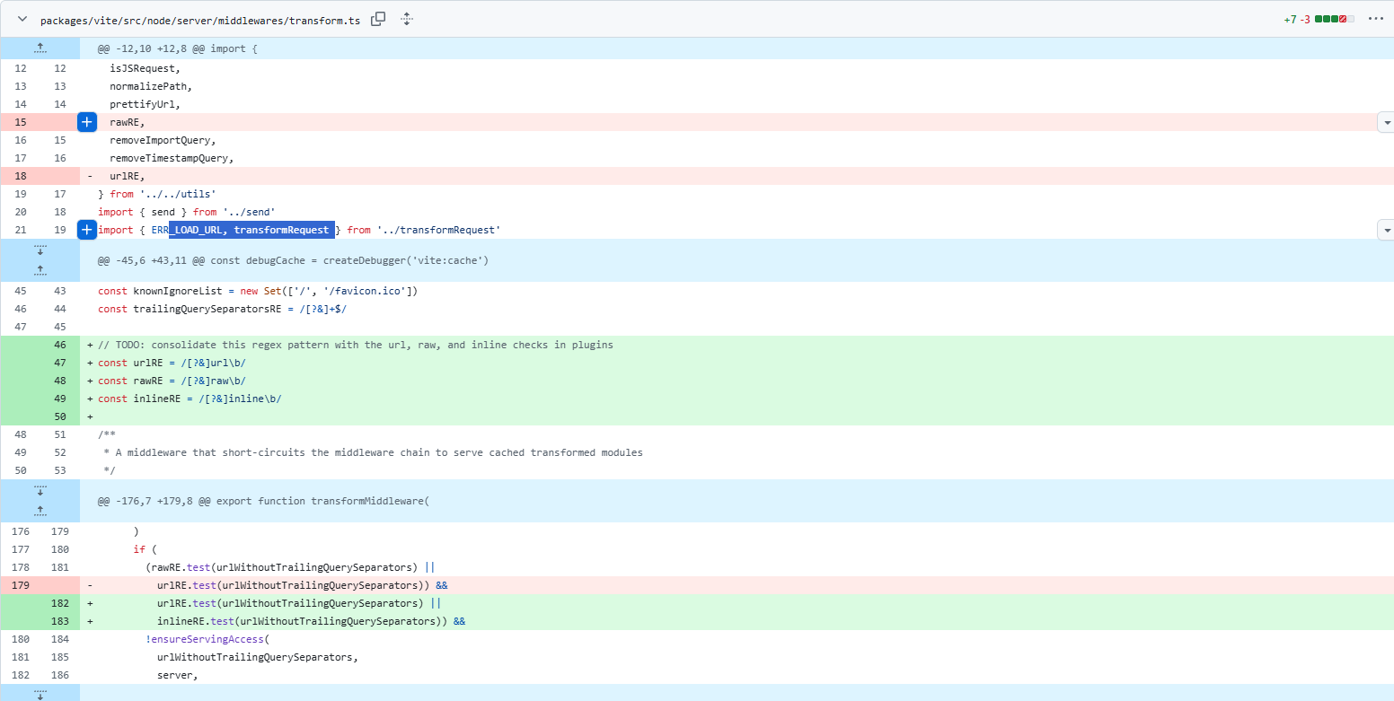 module ??= environment.moduleGraph.getModuleById(id) if (module) { // if a different url maps to an existing loaded id, make sure we relate this url to the id await environment.moduleGraph._ensureEntryFromUrl(url, undefined, resolved) // try use cache from id const cached = awaitgetCachedTransformResult( environment, url, module, timestamp, ) if (cached) return cached }