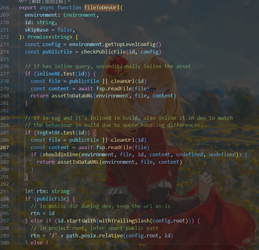 // If is svg and it's inlined in build, also inline it in dev to match // the behaviour in build due to quote handling differences. if (svgExtRE.test(id)) { const file = publicFile || cleanUrl(id) const content = await fsp.readFile(file) if (shouldInline(environment, file, id, content, undefined, undefined)) { returnassetToDataURL(environment, file, content) } }