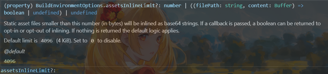 functionshouldInline( environment: Environment, file: string, id: string, content: Buffer, /** Should be passed only in build */ buildPluginContext: PluginContext | undefined, forceInline: boolean | undefined, ): boolean { if (noInlineRE.test(id)) returnfalse if (inlineRE.test(id)) returntrue // Do build only checks if passed the plugin context during build if (buildPluginContext) { if (environment.config.build.lib) returntrue if (buildPluginContext.getModuleInfo(id)?.isEntry) returnfalse } if (forceInline !== undefined) return forceInline if (file.endsWith('.html')) returnfalse // Don't inline SVG with fragments, as they are meant to be reused if (file.endsWith('.svg') && id.includes('#')) returnfalse letlimit: number const { assetsInlineLimit } = environment.config.build if (typeof assetsInlineLimit === 'function') { const userShouldInline = assetsInlineLimit(file, content) if (userShouldInline != null) return userShouldInline limit = DEFAULT_ASSETS_INLINE_LIMIT } else { limit = Number(assetsInlineLimit) } return content.length < limit && !isGitLfsPlaceholder(content) }